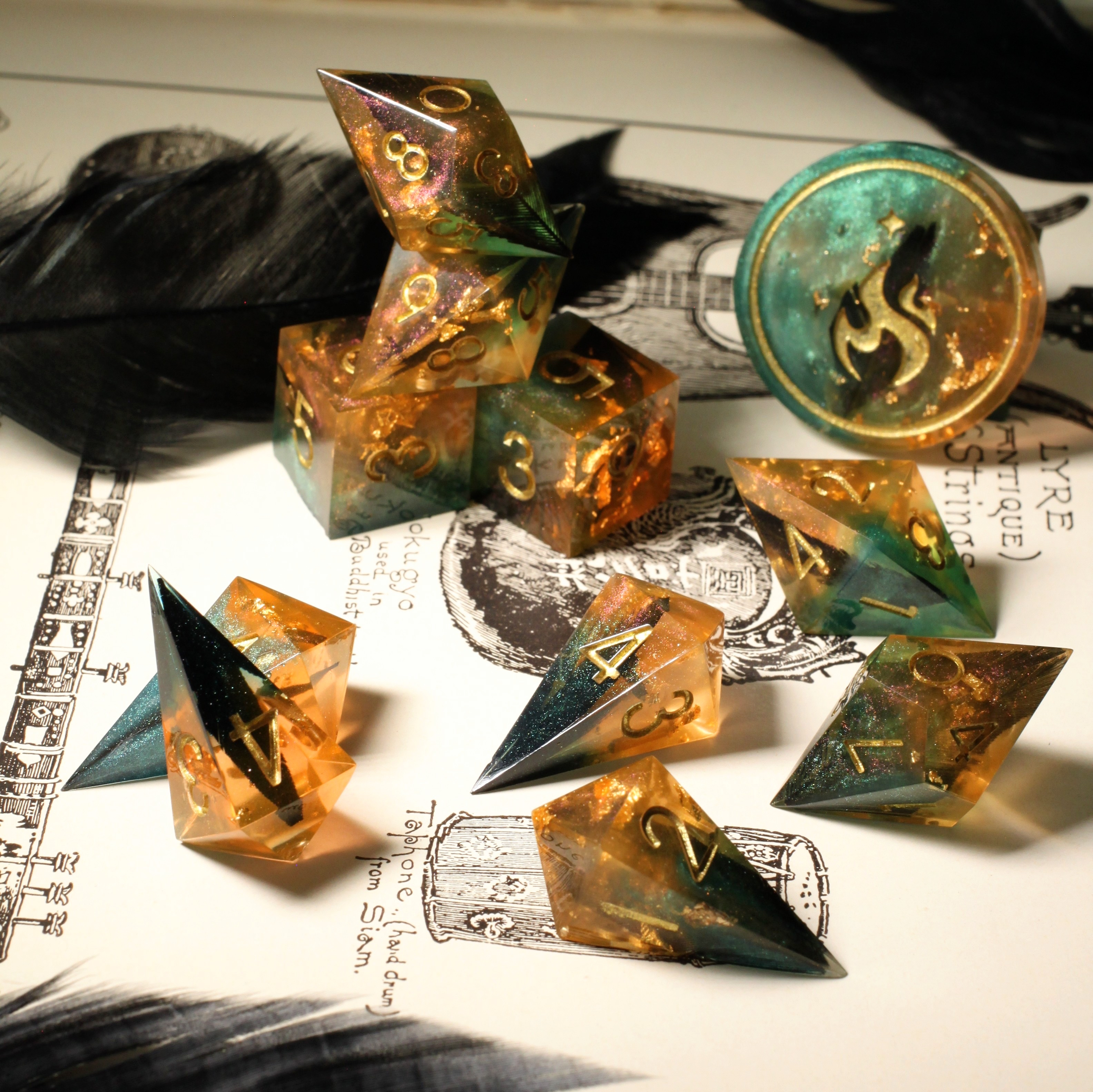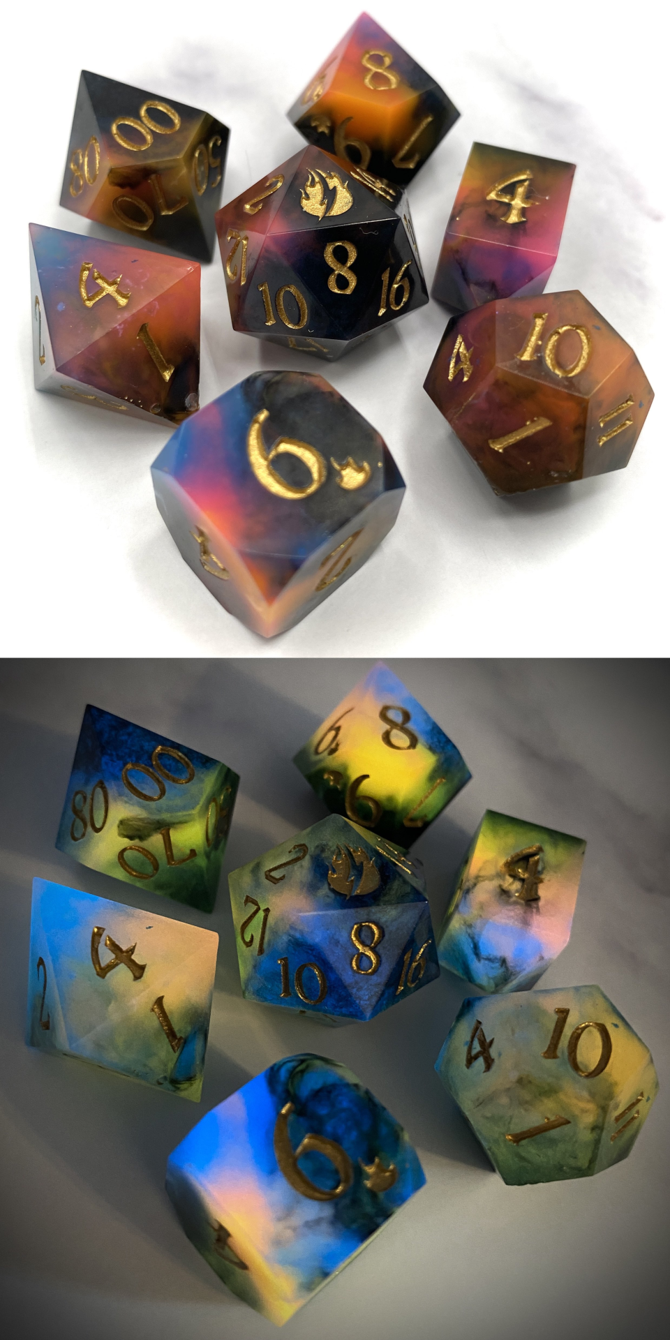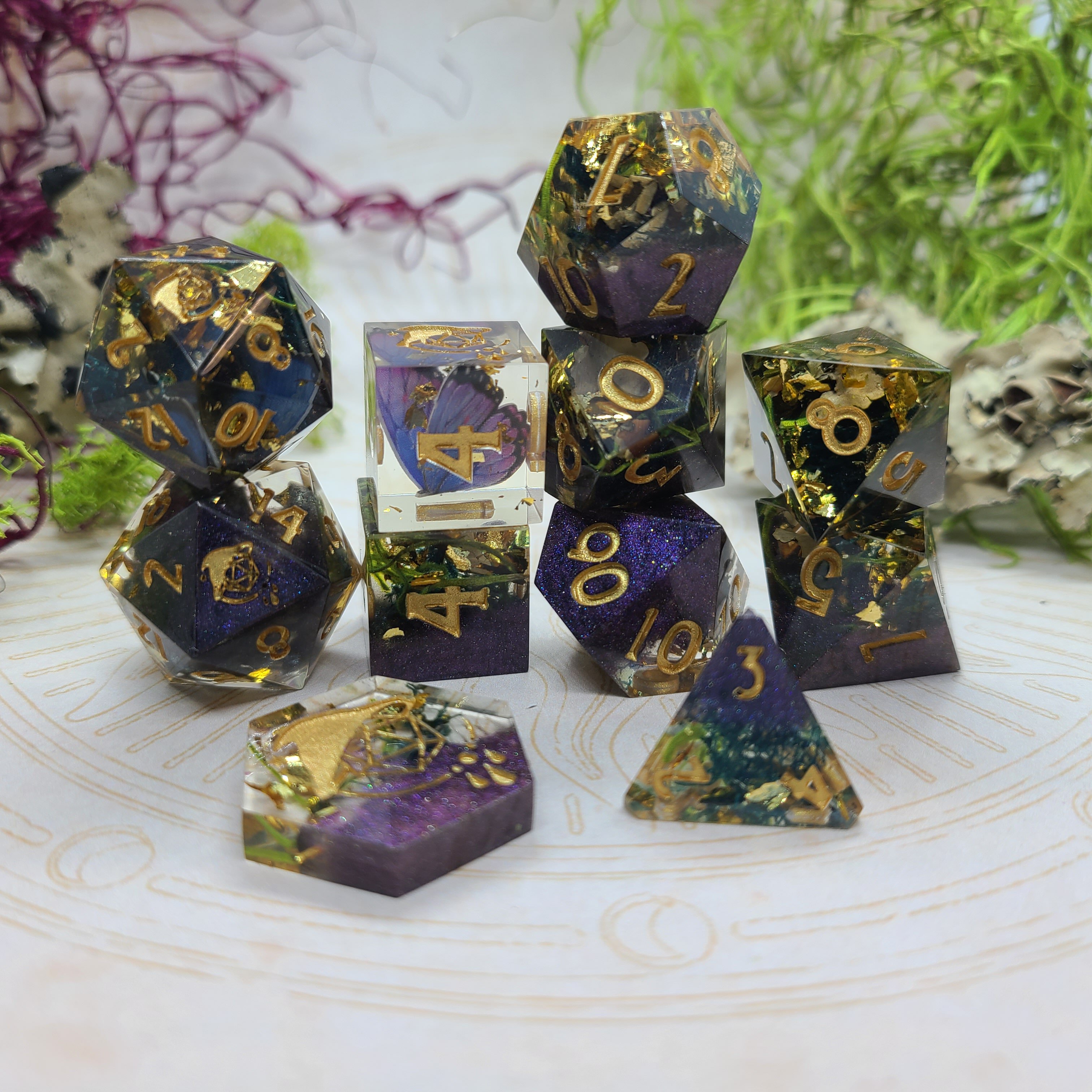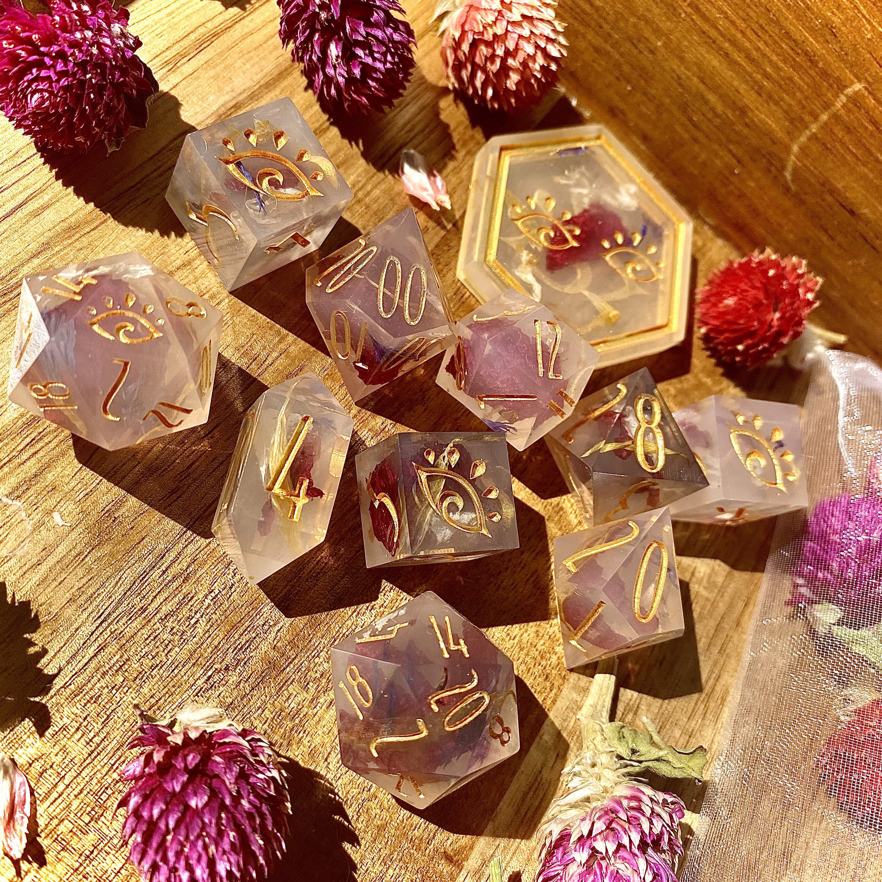 Anywhere you see these icons, you can click them to go to the artist's Instagram post featuring those dice! ♡