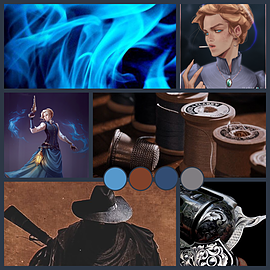 This moodboard is based off of my current dnd character. She's a rogue warforged with a gun. I'm imagining that the parts are mostly all made out of copper. The main color scheme is copper + grey!