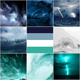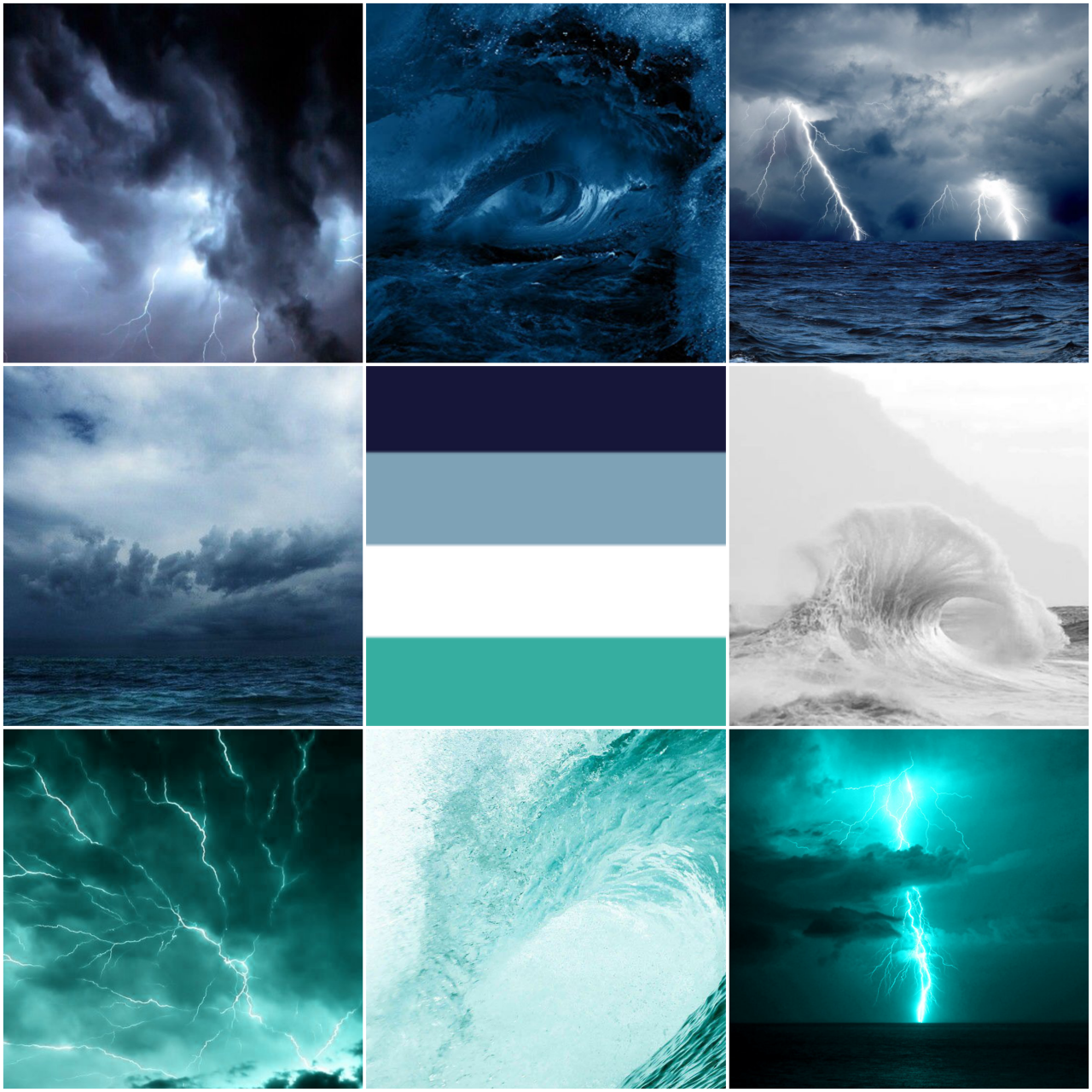 Anything having to do with storms, grey, silver, white all shades of blue, the feeling before, during and after a rainstorm.