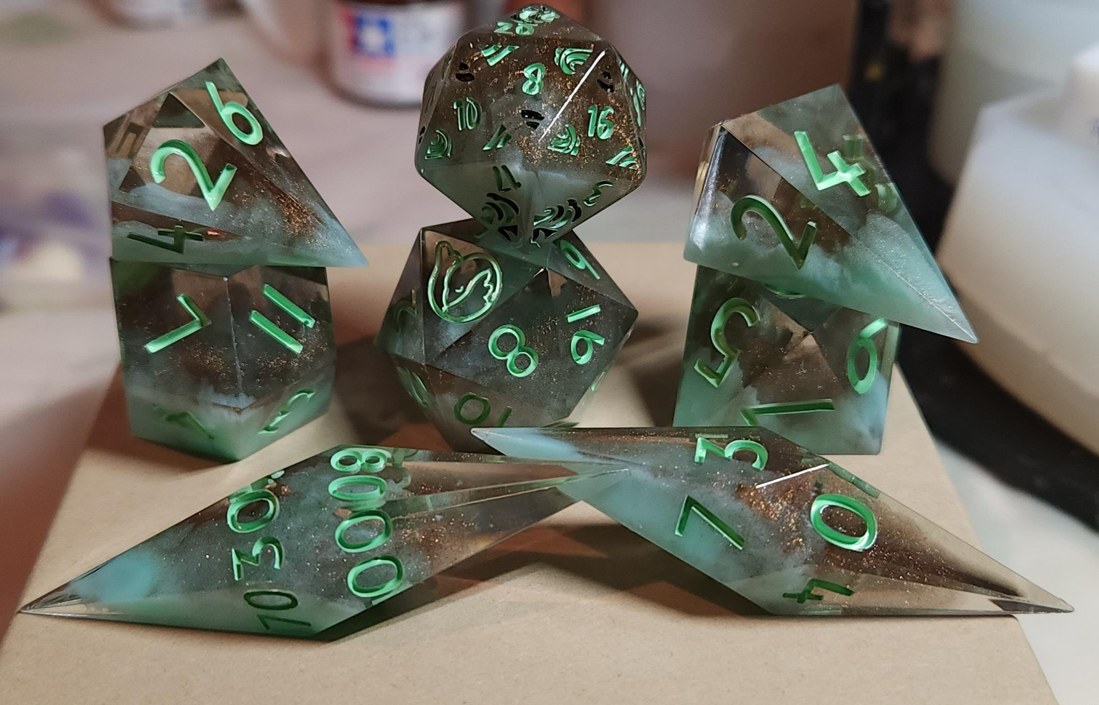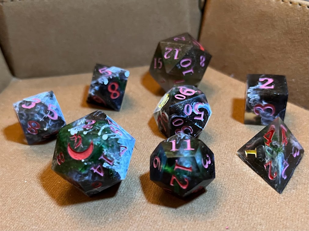 As of the 2025 swap, we have implemented a strict rule against the use of generative AI imagery in moodboards. Prior to the 2025 swap, you will find some moodboards in these galleries featuring such content; these participants broke no rule, because none existed at the time. We keep these moodboards displayed, despite this change in policy, for the sake of the dice made to go with them, as that is the work of very skilled humans worth celebrating. Seeing how a maker interpreted a moodboard and created dice based off of it is the fun part of browsing these galleries, and participants who made dice for a moodboard containing AI imagery deserve to be a part of that celebration of their very real, very human creation just as much as everyone else.