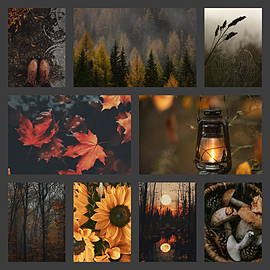 The autumn evenings hide the truth of change in the shadows of the lantern's flickering flame. When the dawn comes again the trees will shudder, dropping their fire kissed leaves and needles alongside pine scented raindrops.