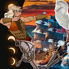 A reluctant trade made - the loss of the crash of waves, the sting of salt air, the wide expanse of the night sky and the oozing warm colors of the sunset. And yet something gained - the flap of wings, the sharp brush of metal against leather and a taut bowstring in hand. Laughter around a campfire. Timid prayers whispered to a bright full moon.