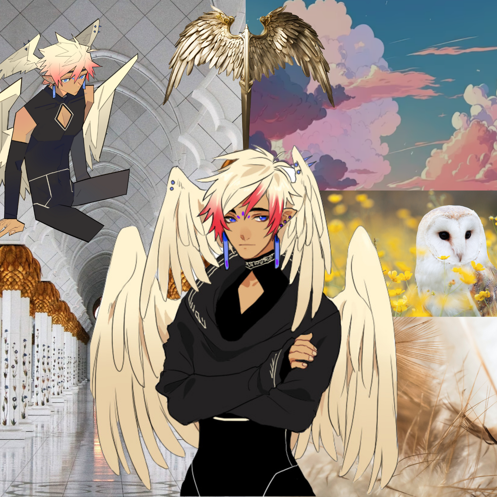 I beheld a figure both regal and divine, bathed in the glow of his celestial aura. His golden mane cascaded like a river of sunlight, framing a face that bore the weight of leadership with serene dignity. But his wings held me in thrall. Feathers, like the plumage of mythic birds, spanned wide from his broad back, catching the ambient light and casting an ephemeral. His armor gleamed with an otherworldly radiance. Every detail spoke of a legacy etched in gold and blood.